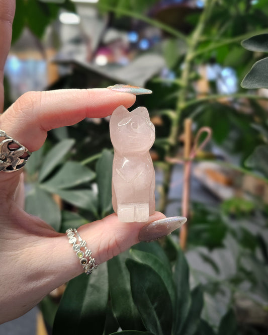 Rose Quartz Cat Carving