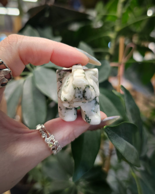 Moss Agate Elephant Carving