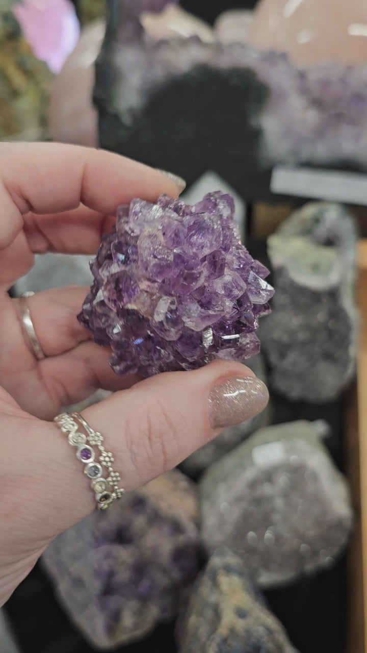 A beautiful, sparkly Amethyst Pine Cluster. This gorgeous piece will be a stunning addition to any crystal collection!