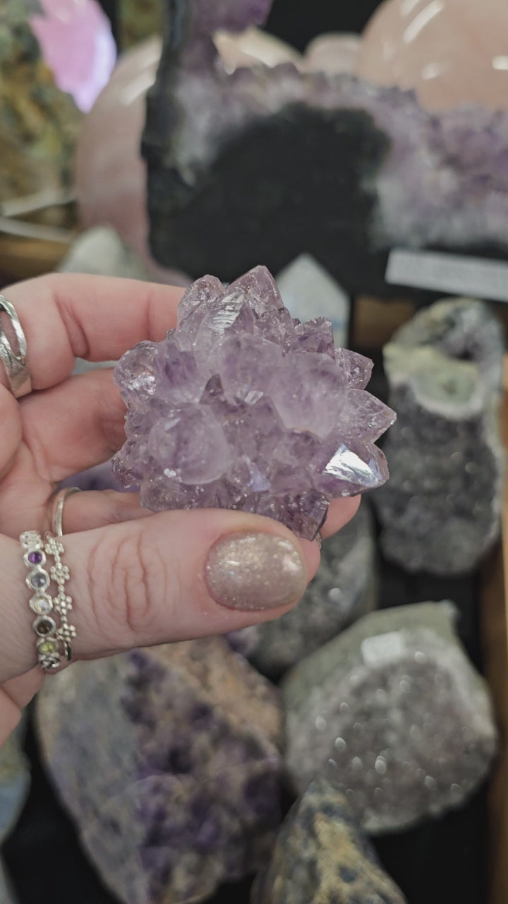 A beautiful, sparkly Amethyst Pine Cluster. This gorgeous piece will be a stunning addition to any crystal collection!