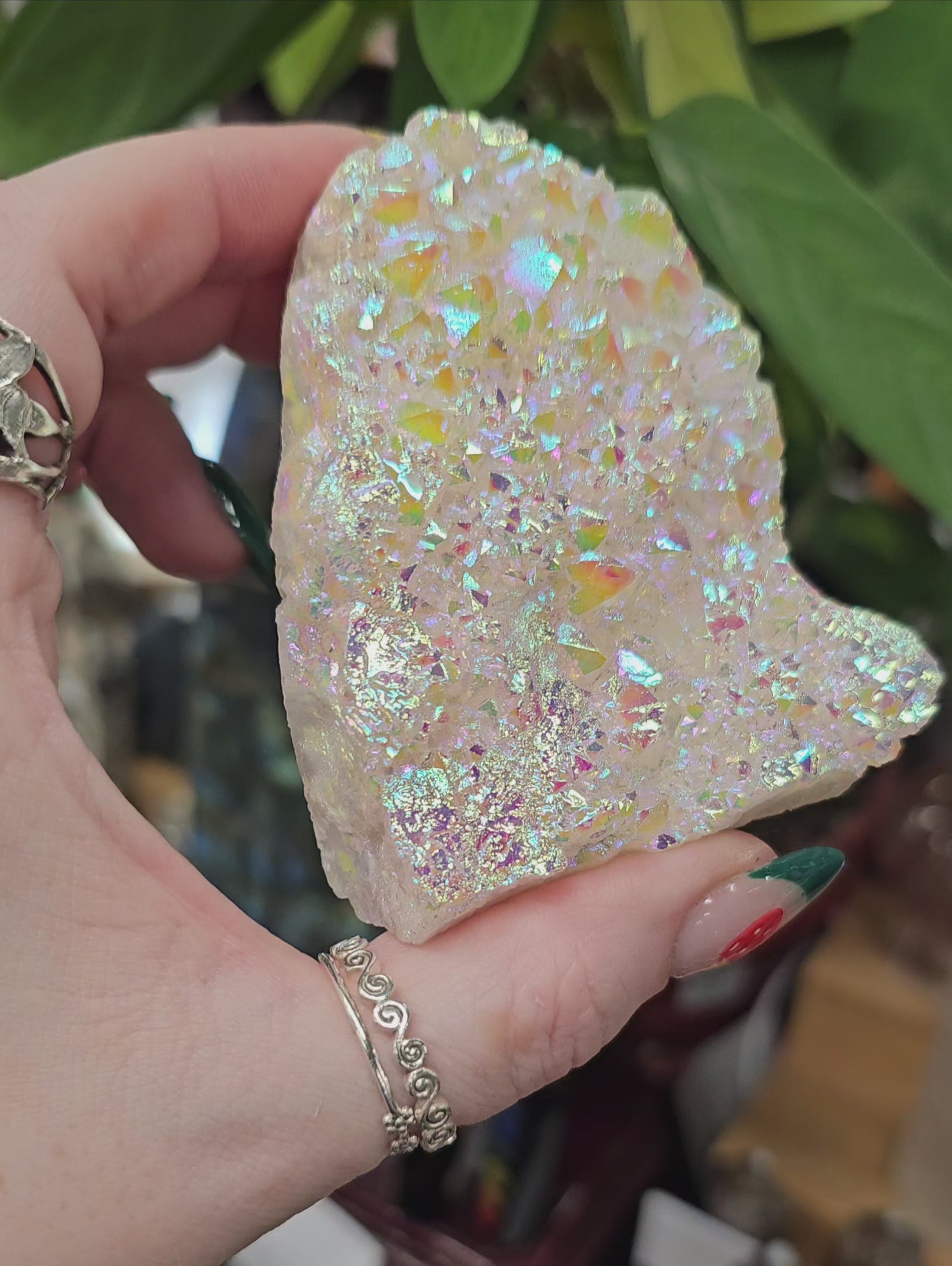 A stunning magical piece of Aura Quartz that glimmers different colours depending on the angle you look at it