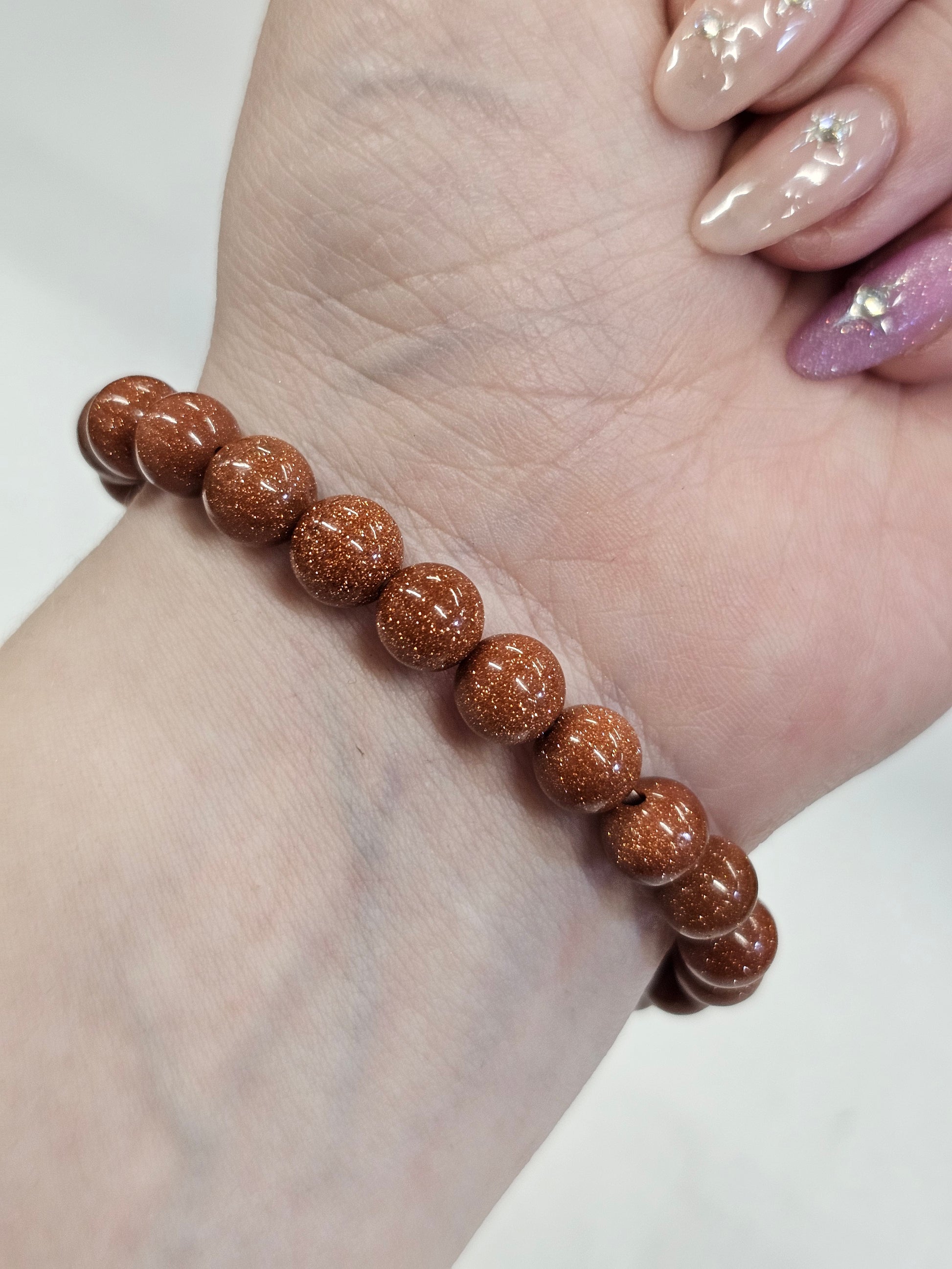 A beautiful Goldstone bead bracelet to wear for its healing properties or to style with your favourite outfit.