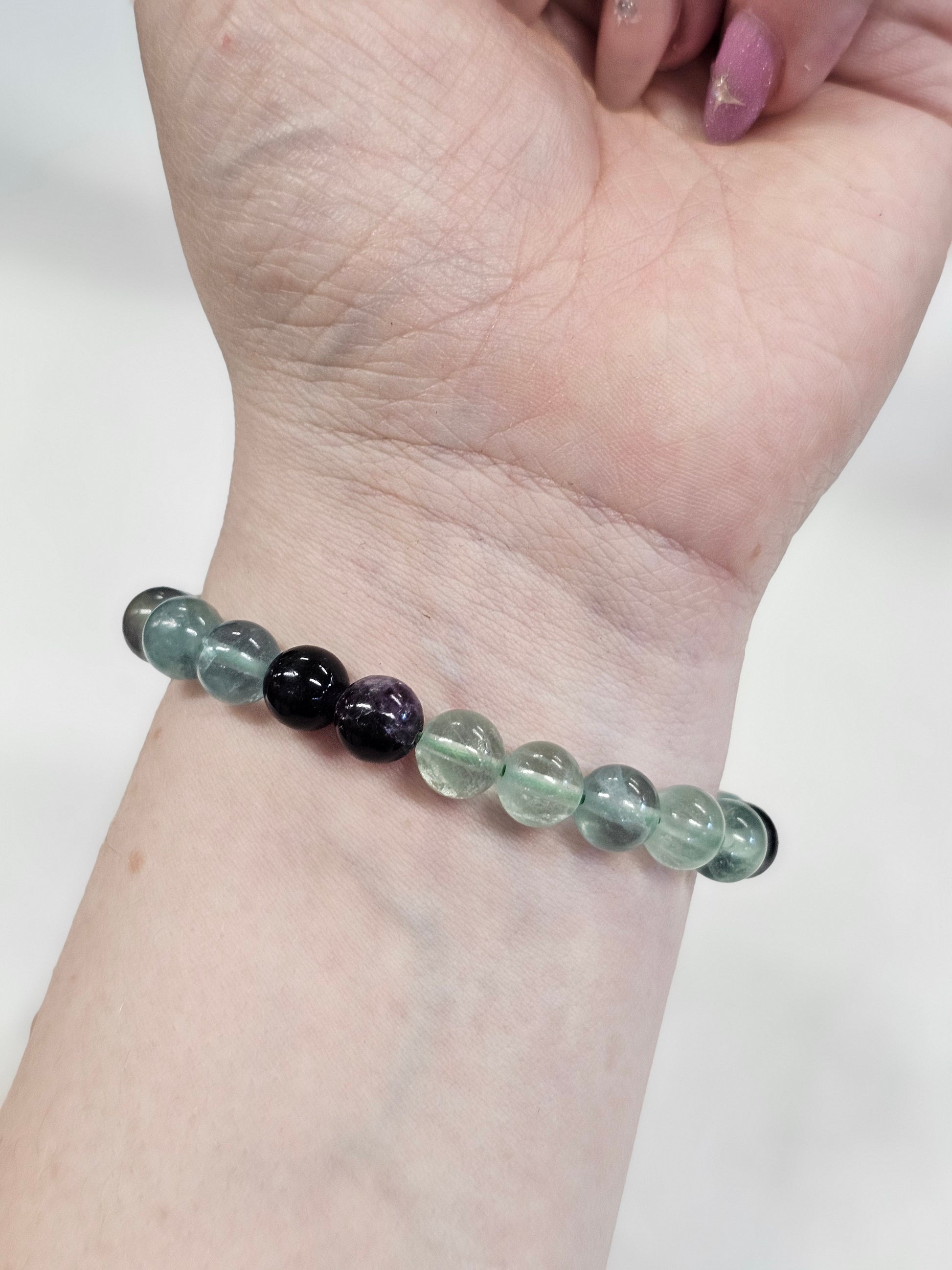 A beautiful Rainbow Fluorite bead bracelet to wear for its healing properties or to style with your favourite outfit.