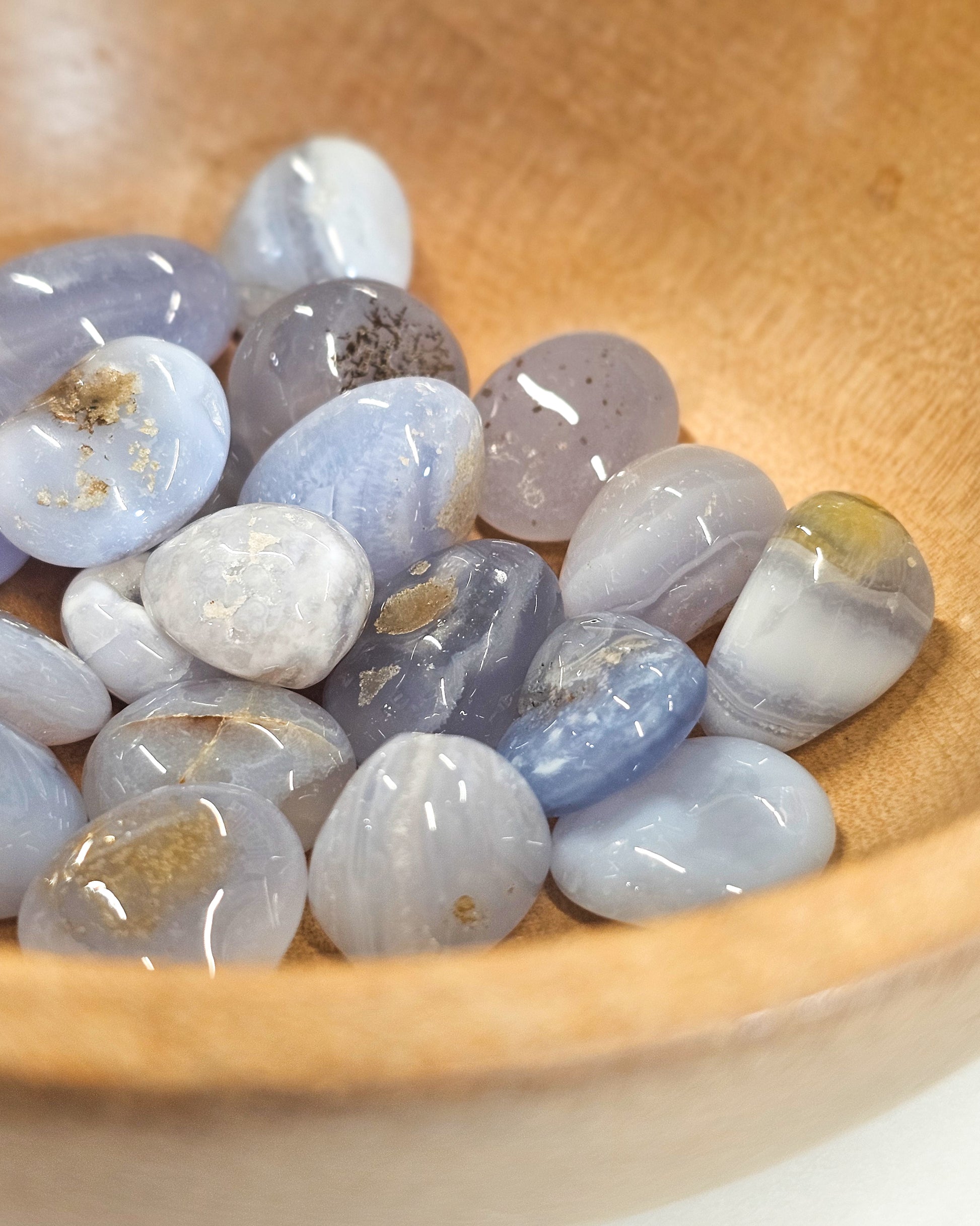 BLUE LACE AGATE is a stone of serenity. It can help those who suffer with stage fright and anxiety. Allows you to feel confident and aids in self acceptance. Clears away toxic thoughts and replaces it with hope. THROAT & THIRD EYE CHAKRA