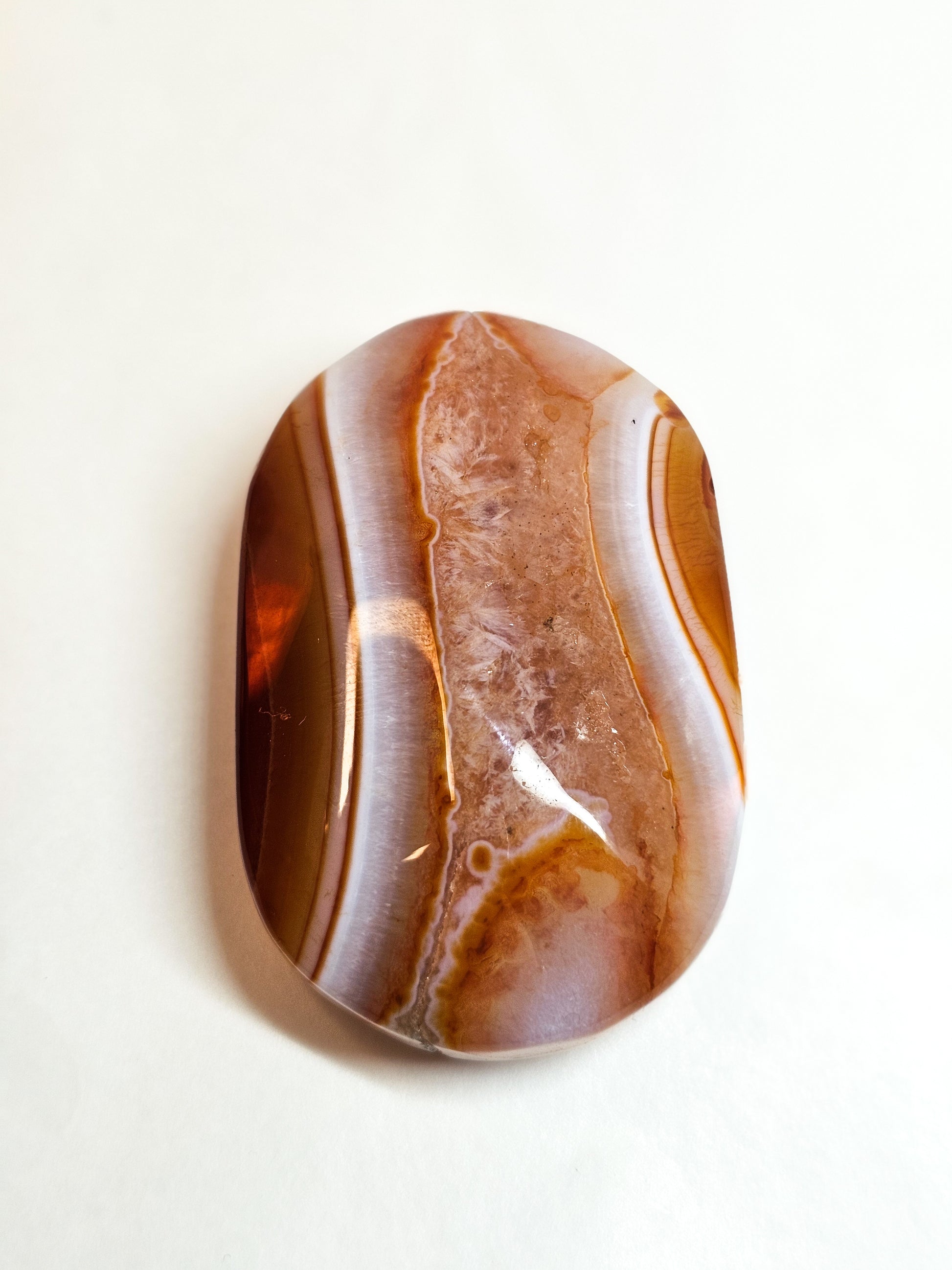 A stunning piece of carnelian that fits beautifully and comfortably in your hand.