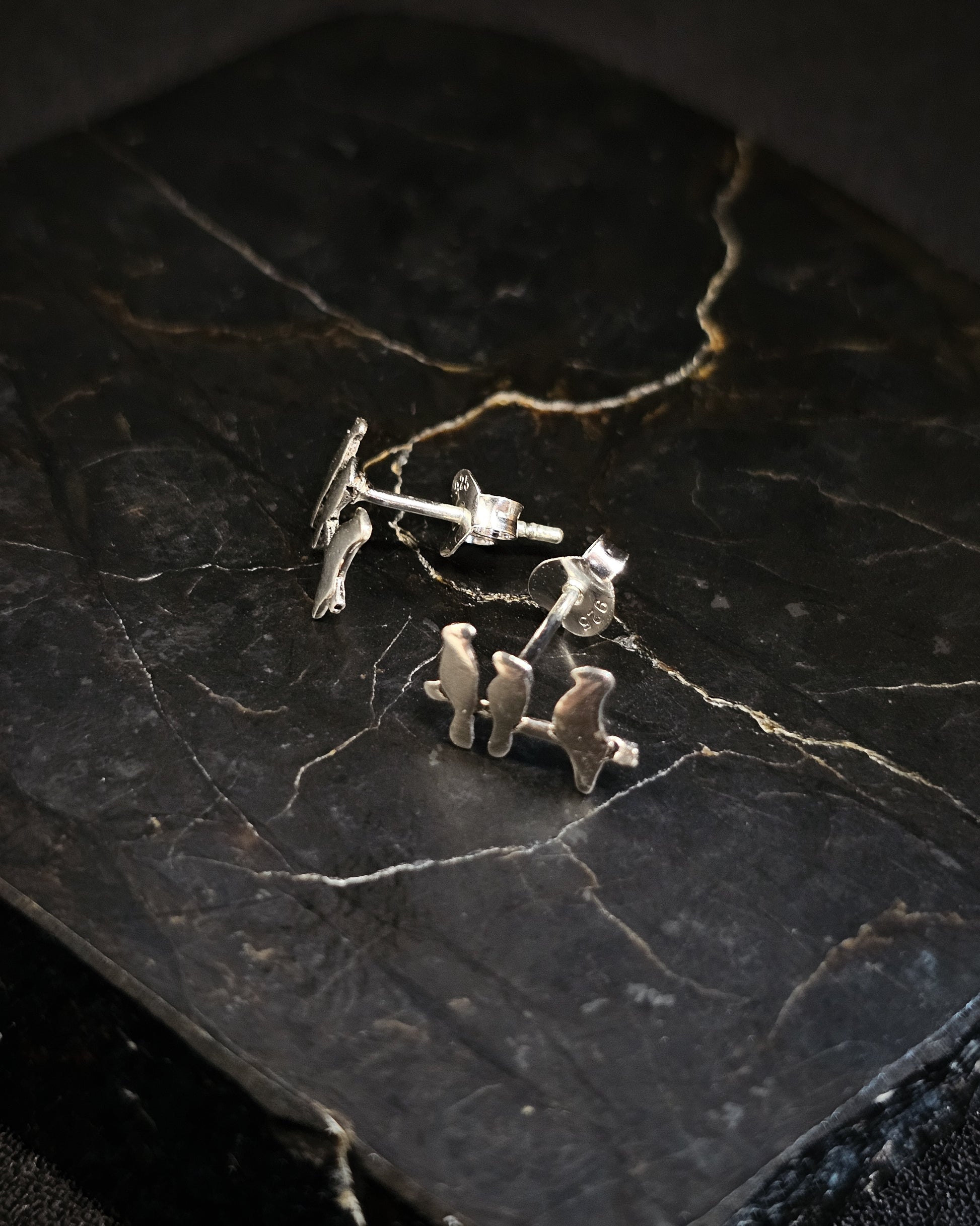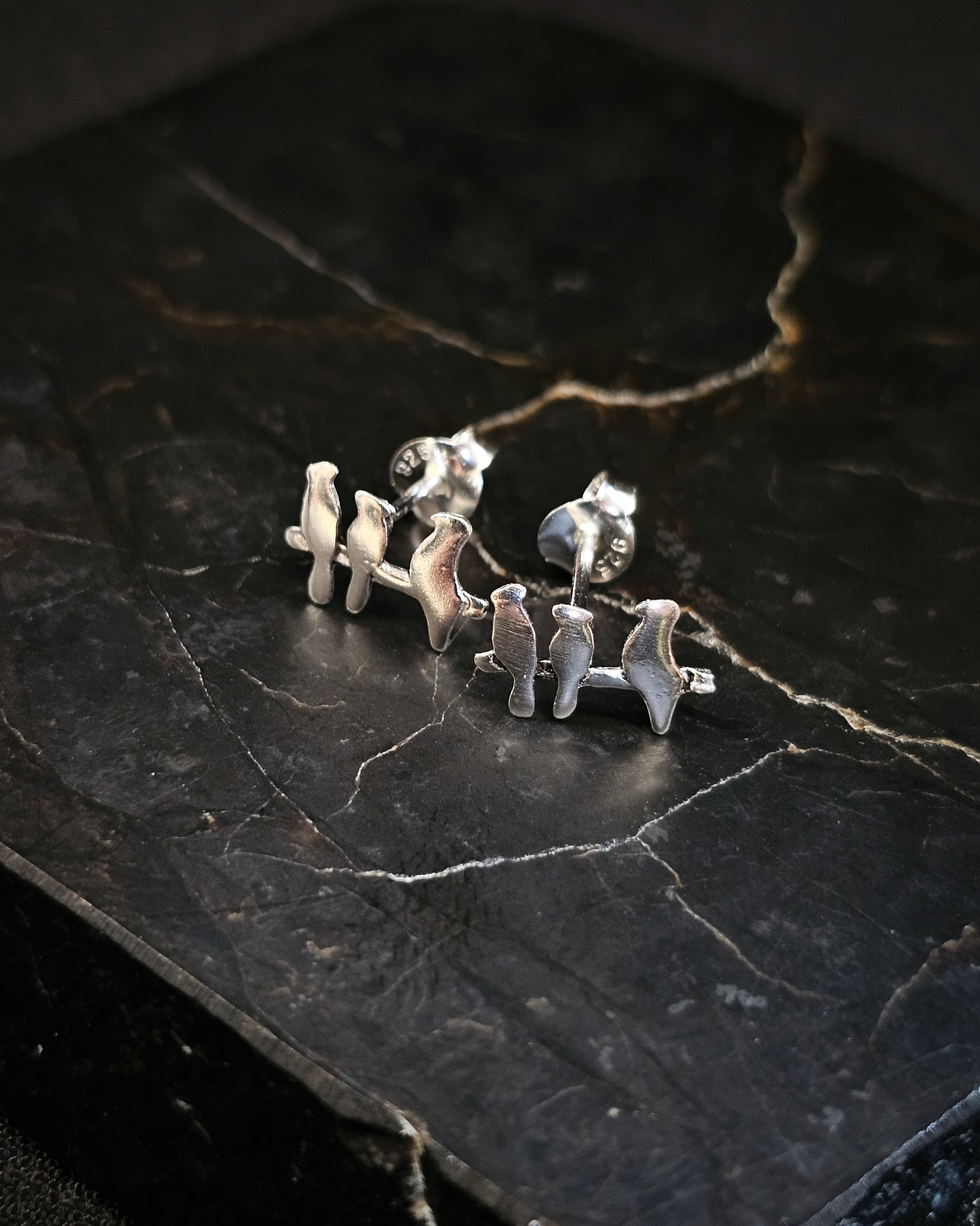 Sterling silver birds on a branch studs