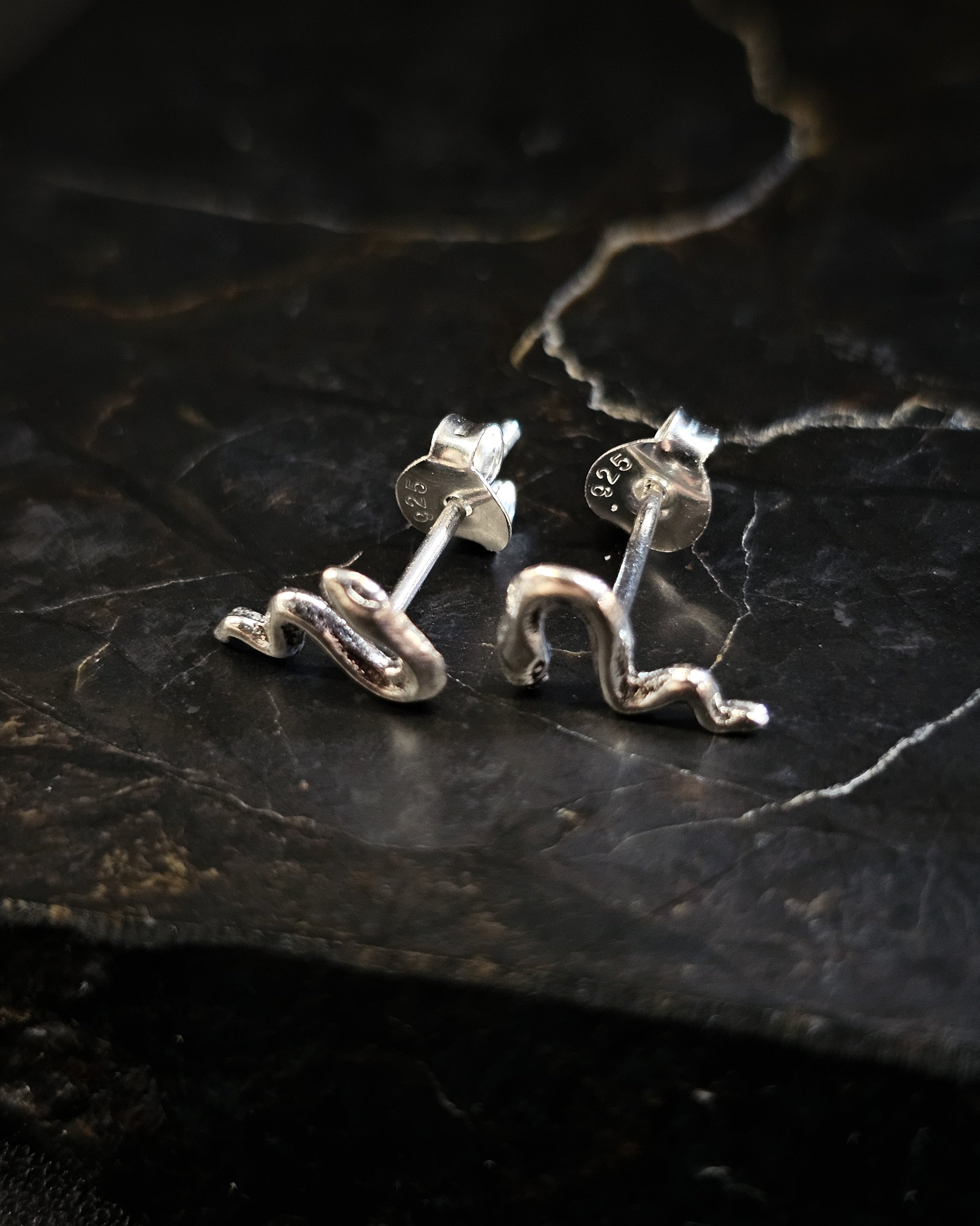 Sterling silver snake studs