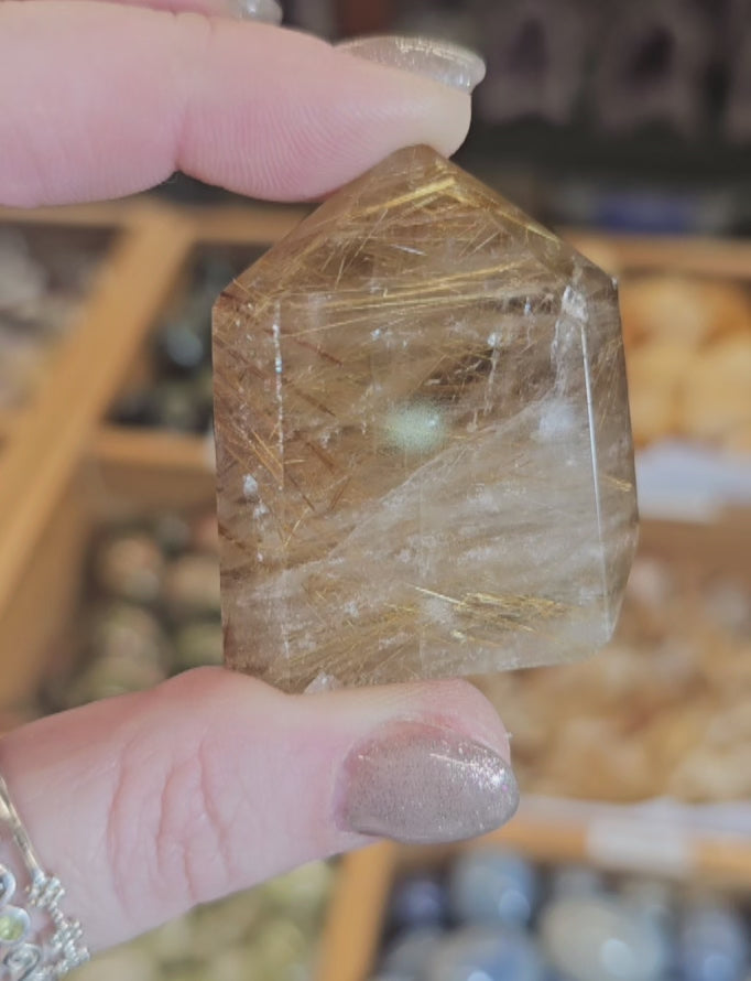 RUTILATED QUARTZ is an illuminator for the soul, promoting spiritual growth. It cleanses and energises the aura, draws off negative energy. Gives protection against the ill thoughts of others. Helps to reach the root of problems and facilitates transitions and a change of direction. Soothes dark moods, relieves fears, phobias and anxiety. Aligns ALL CHAKRAS.