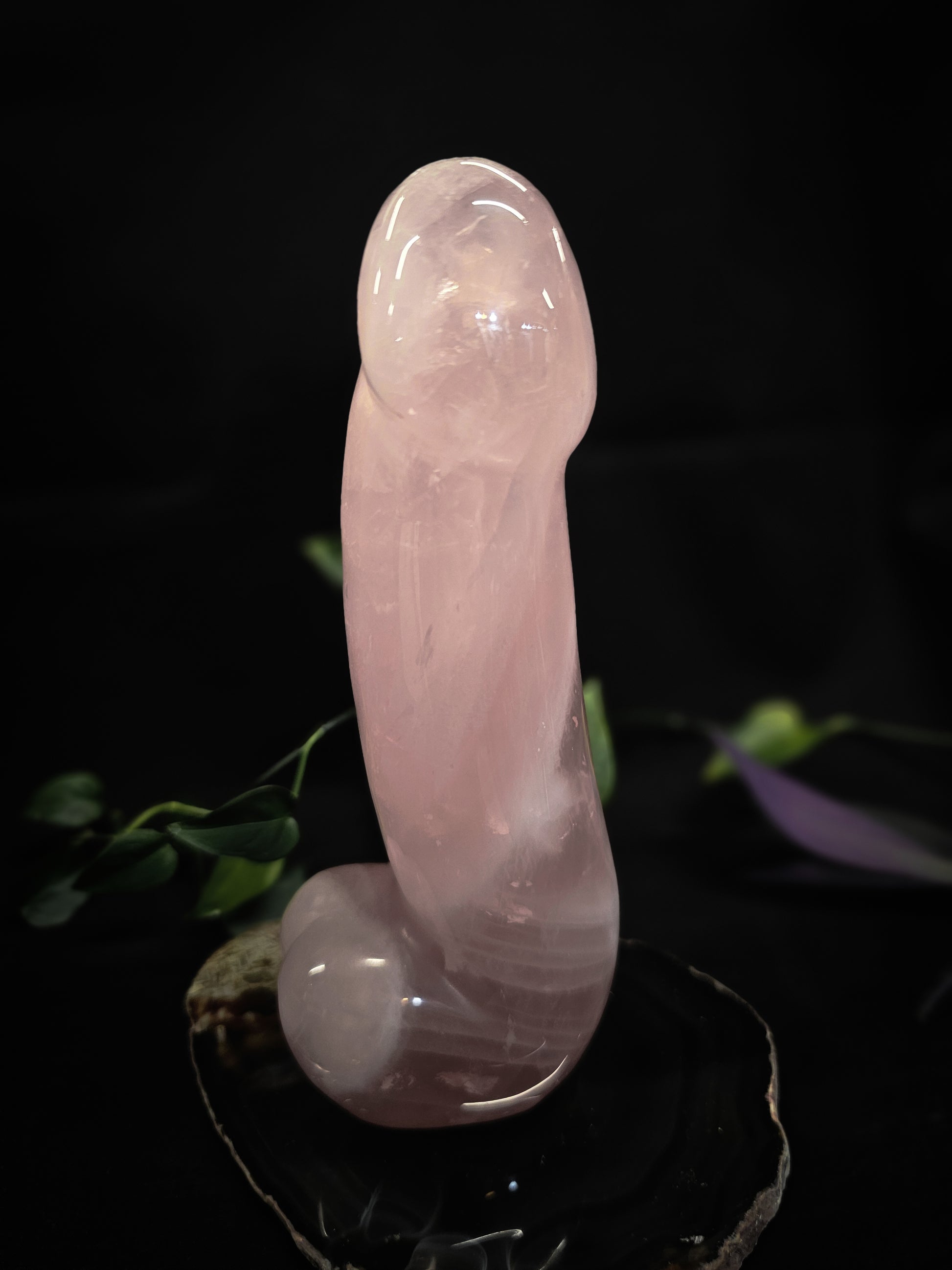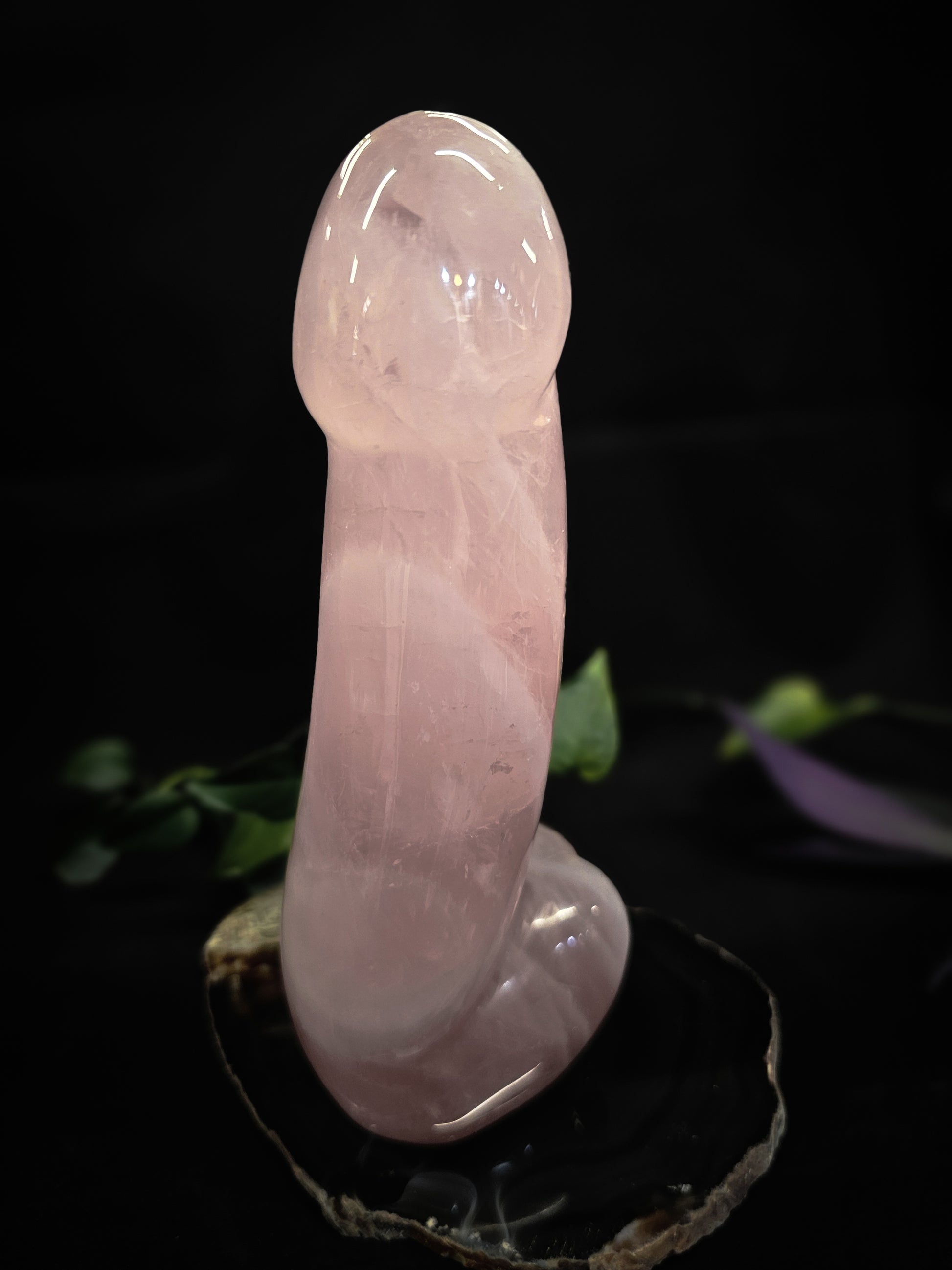 This beauty is made of Rose-Quartz, and stands just shy of 19cm with a girth of approximately 7cm at its base.