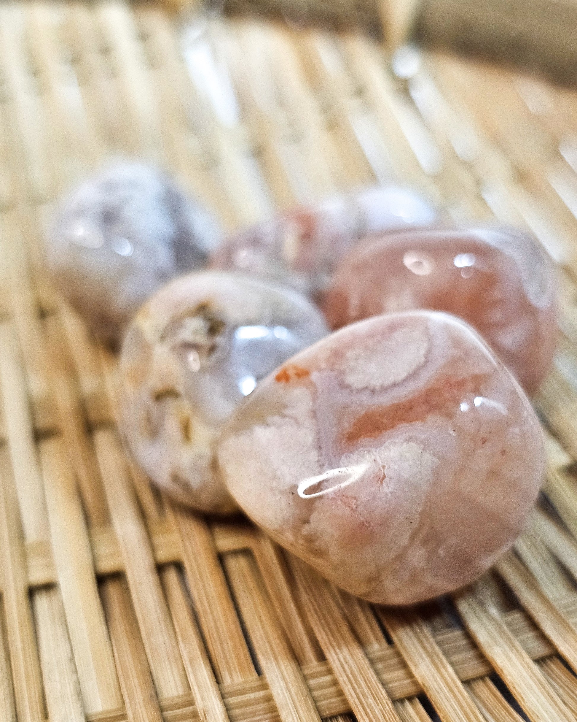 FLOWER AGATE - allows us to move on from traumatic experiences, opens your heart to love yourself and others, as well as allowing you to grow emotionally and spiritually as a person by processing emotions in a healthy way. Grounds to help with insomnia and restore emotional balance. HEART AND ROOT CHAKRA