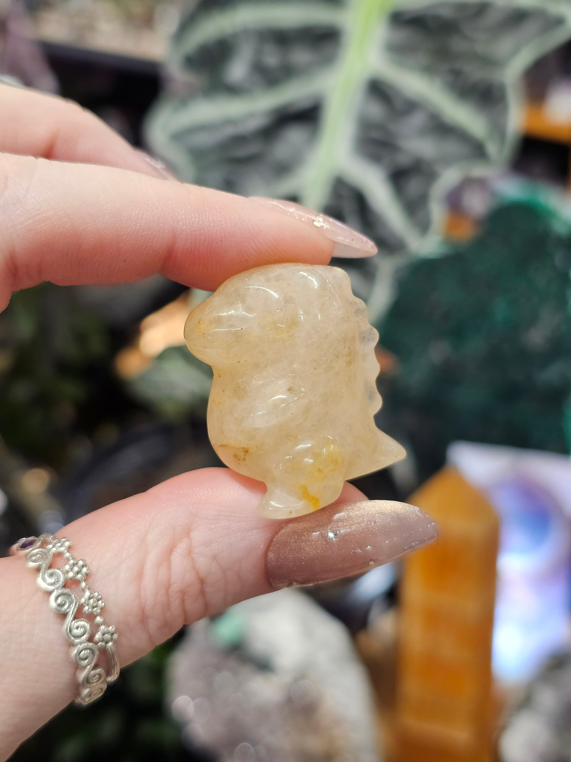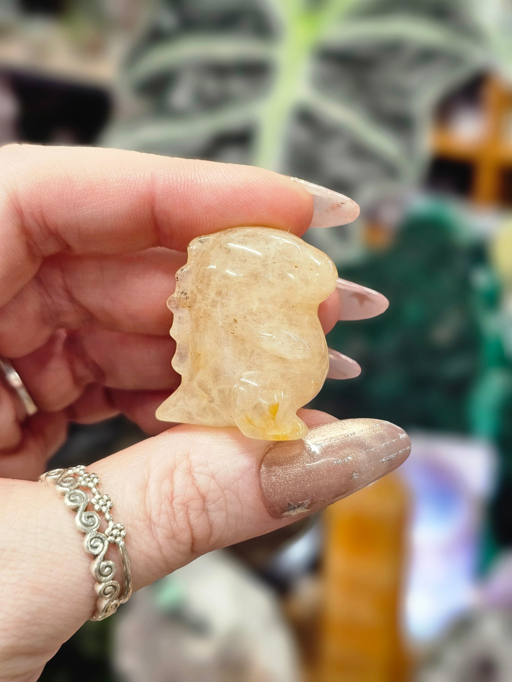 An adorable hand carved Golden Healer dinosaur!
