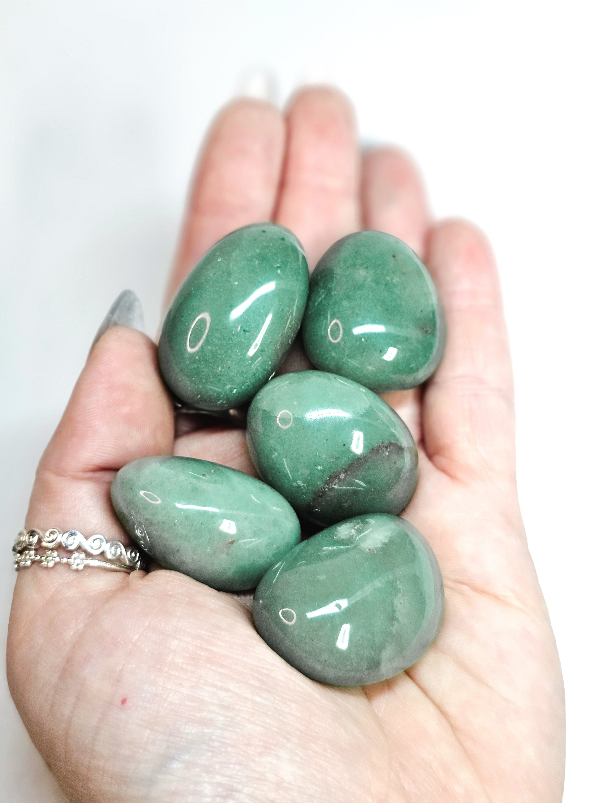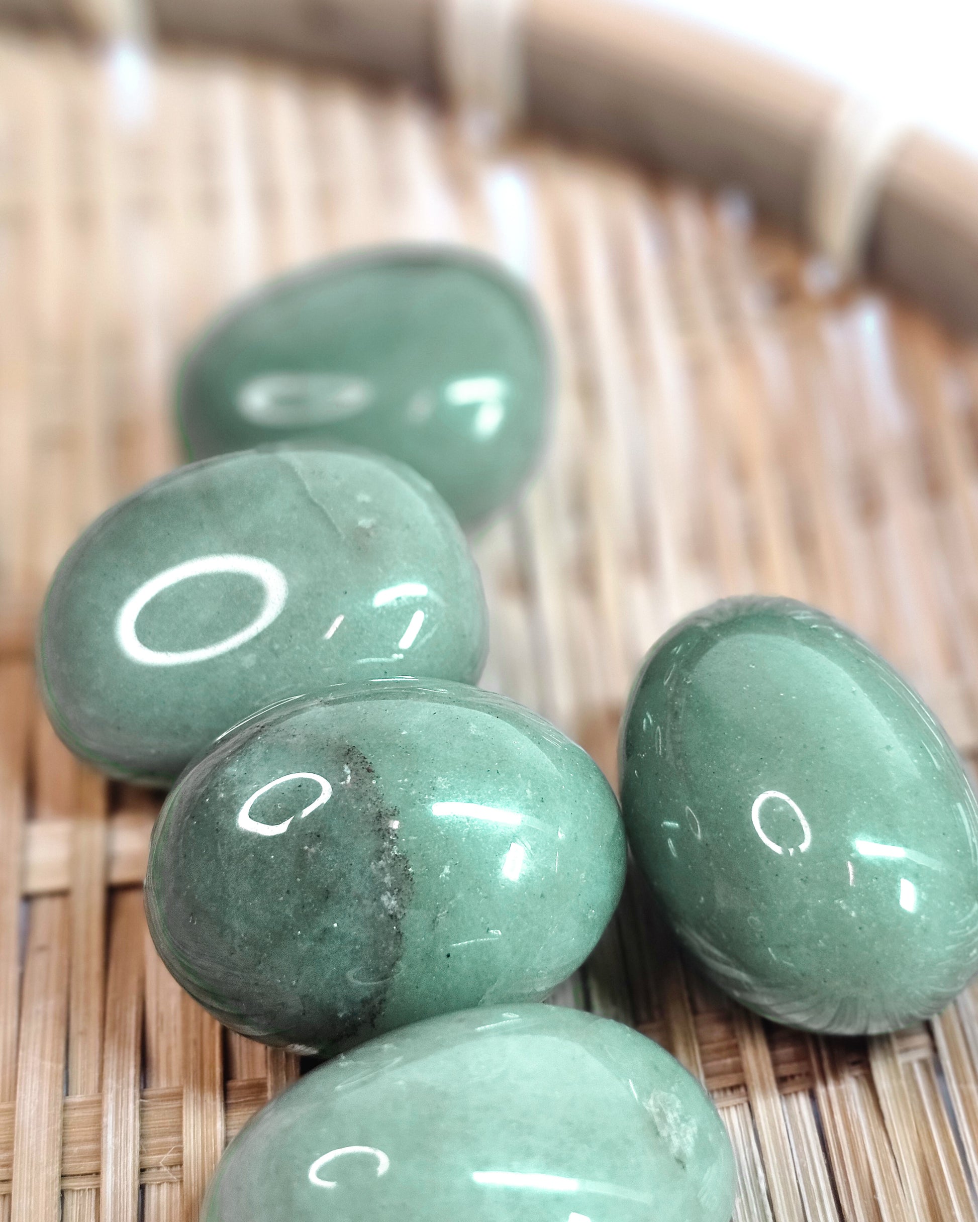 Green aventurine - Stone of harmony and healing. Can help to improve relationships, particularly those of a romantic form. Can help to calm oneself assisting in removing anxiety and restlessness. Brings prosperity, success and good luck. Heart chakra.