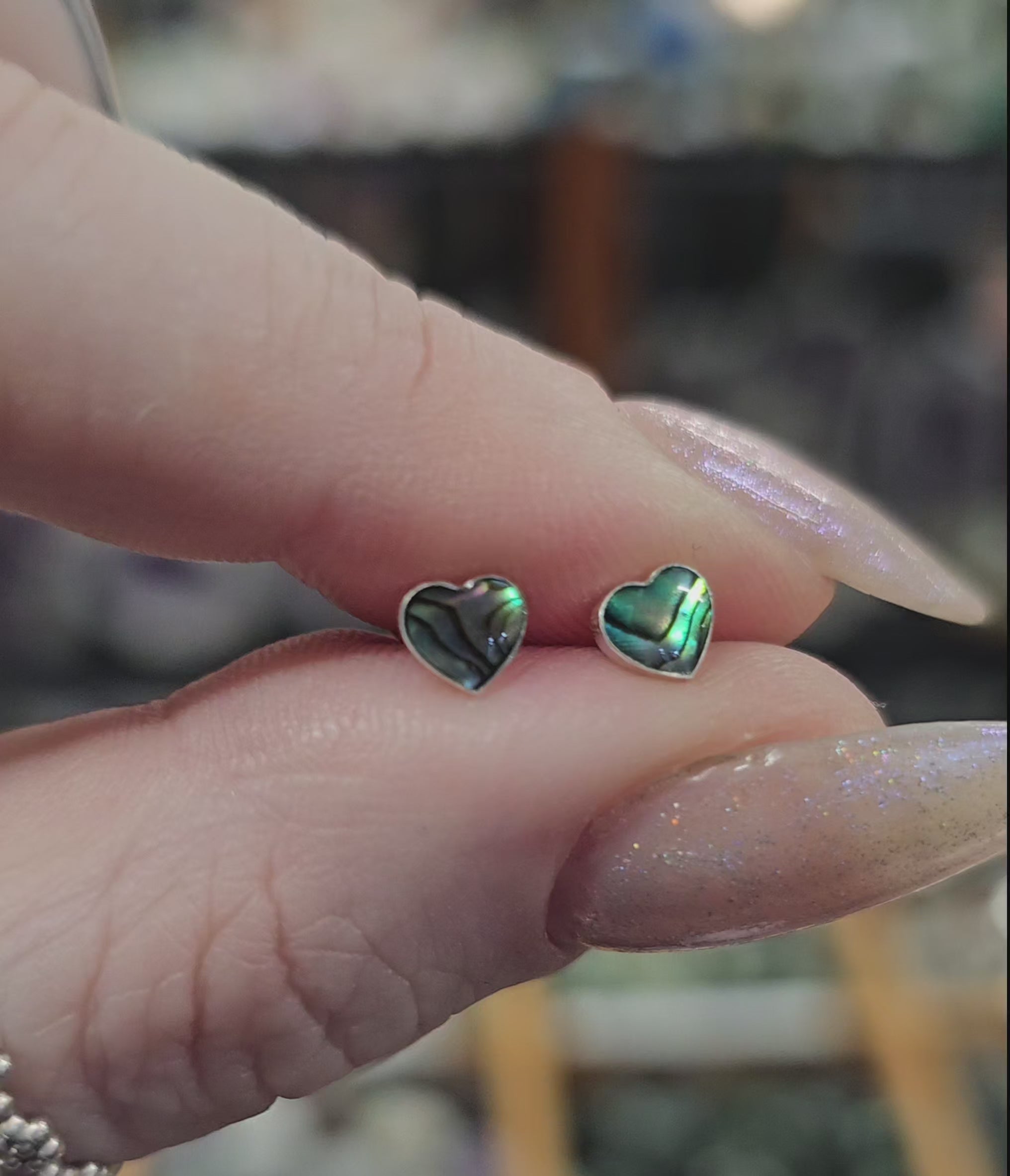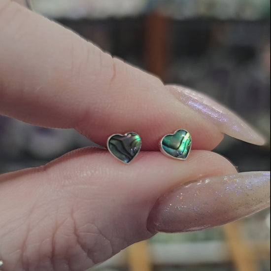 Delicate little heart Paua studs set in sterling silver.