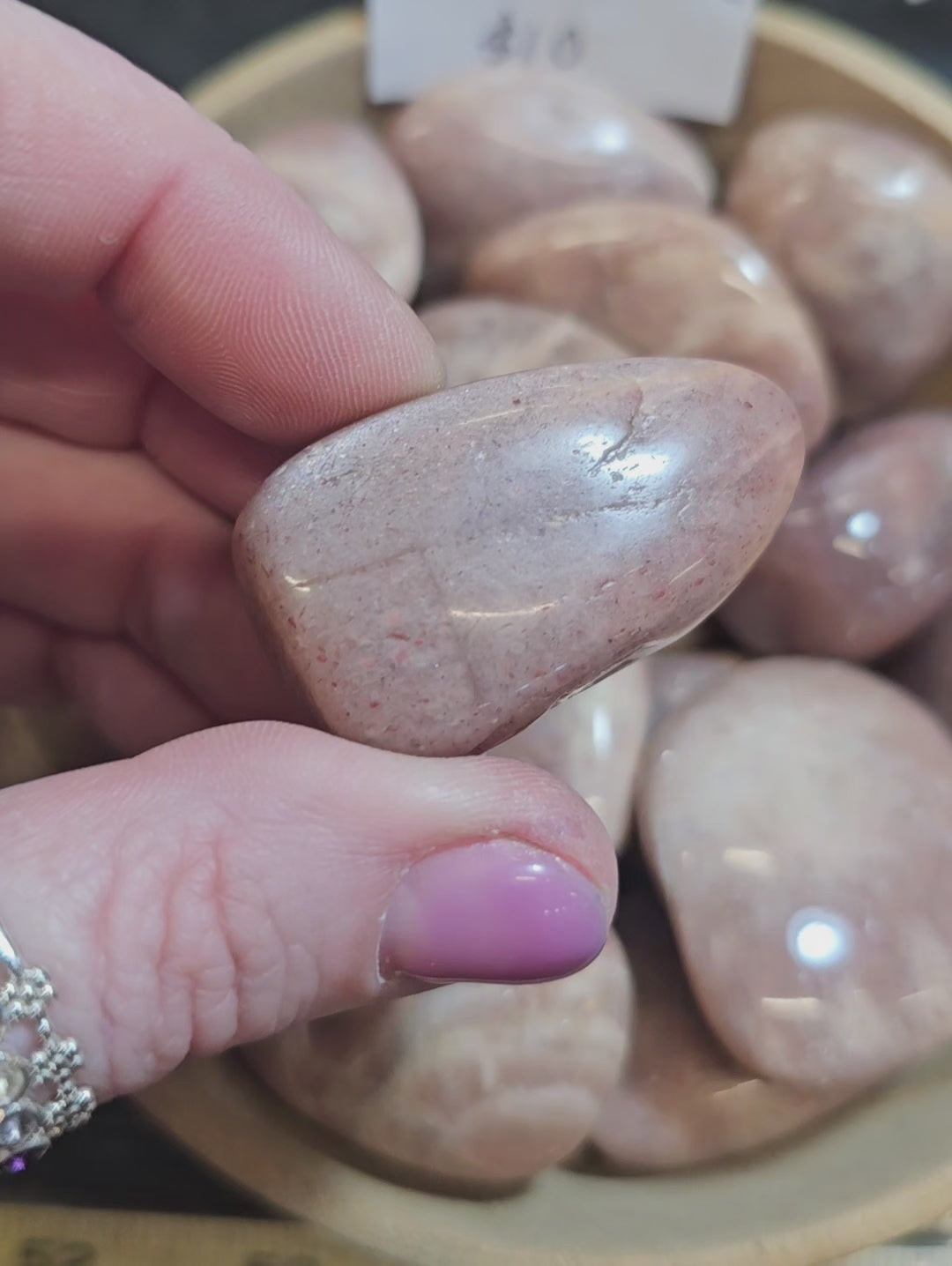 These gorgeous Peach Moonstone tumbles are the perfect size for popping in your pocket or purse, or at your desk at work!