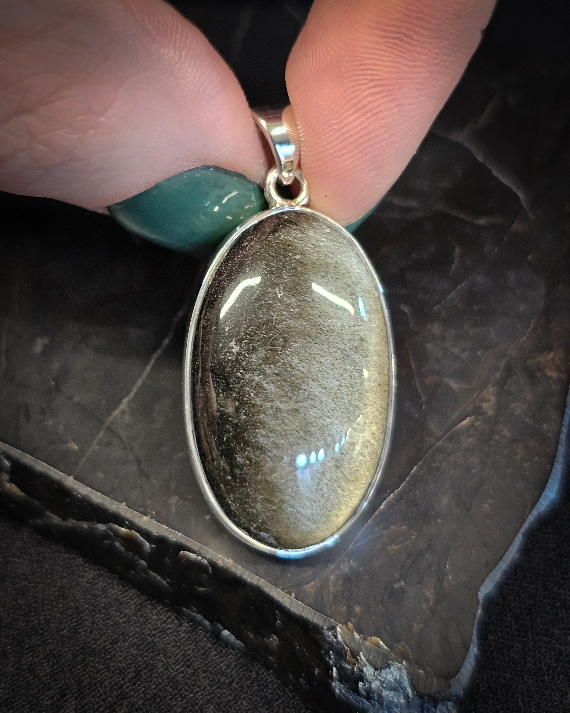 A stunning Gold Sheen Obsidian pendant set in 92.5 sterling silver