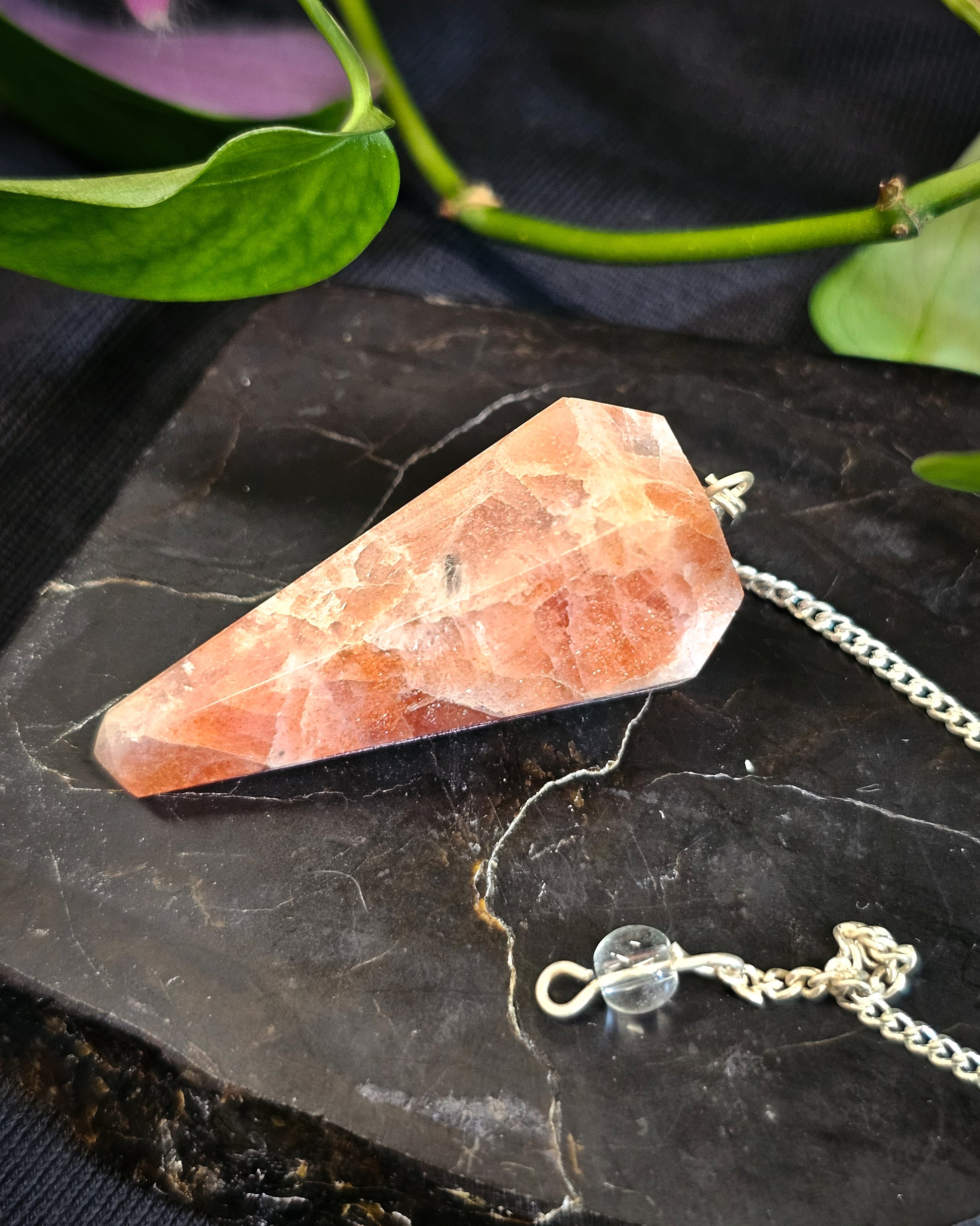 A beautiful Sunstone pendulum perfect for divination and decision making.