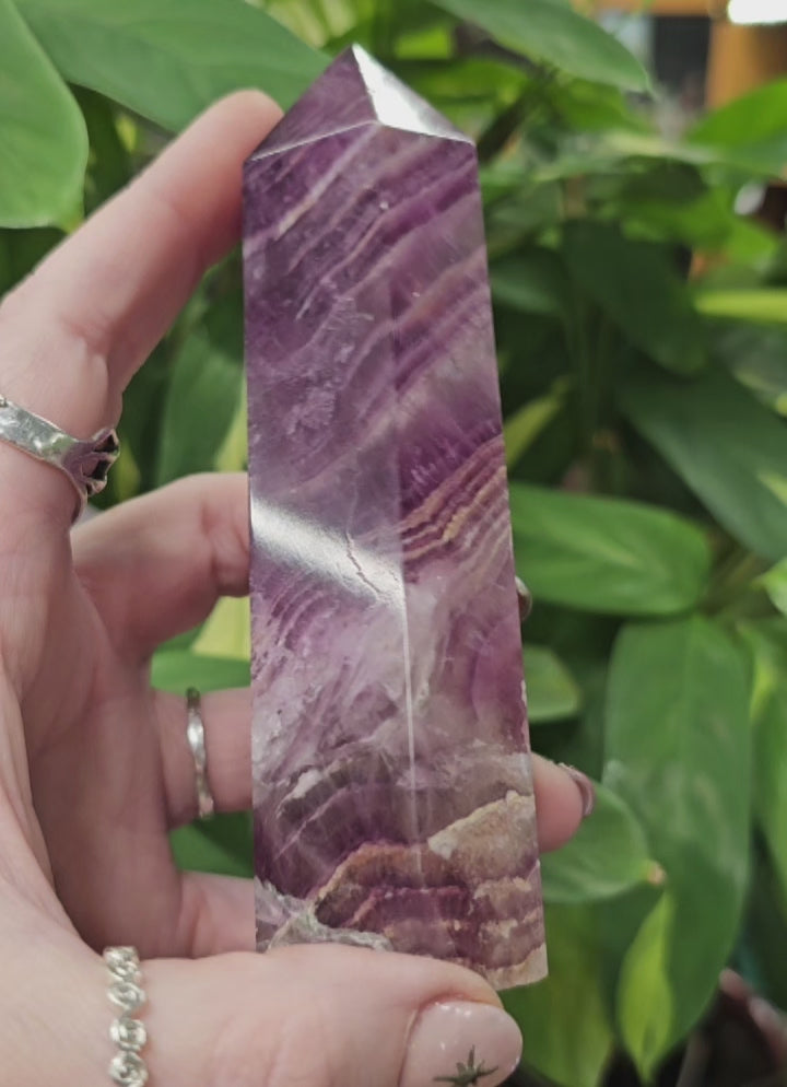 A stunning predominantly purple Rainbow Fluorite point with beautiful banding throughout.