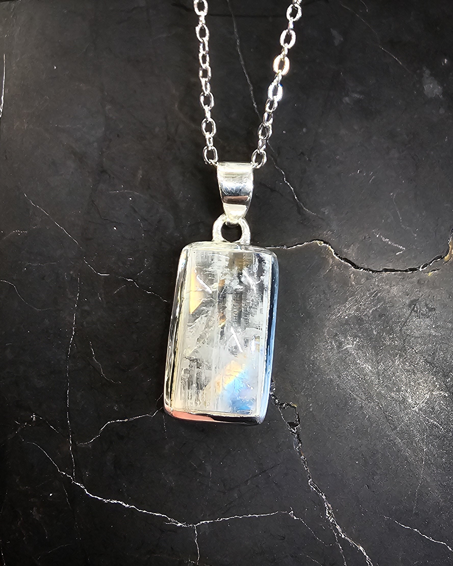 A stunning Rainbow Moonstone pendant set in 925 sterling silver.