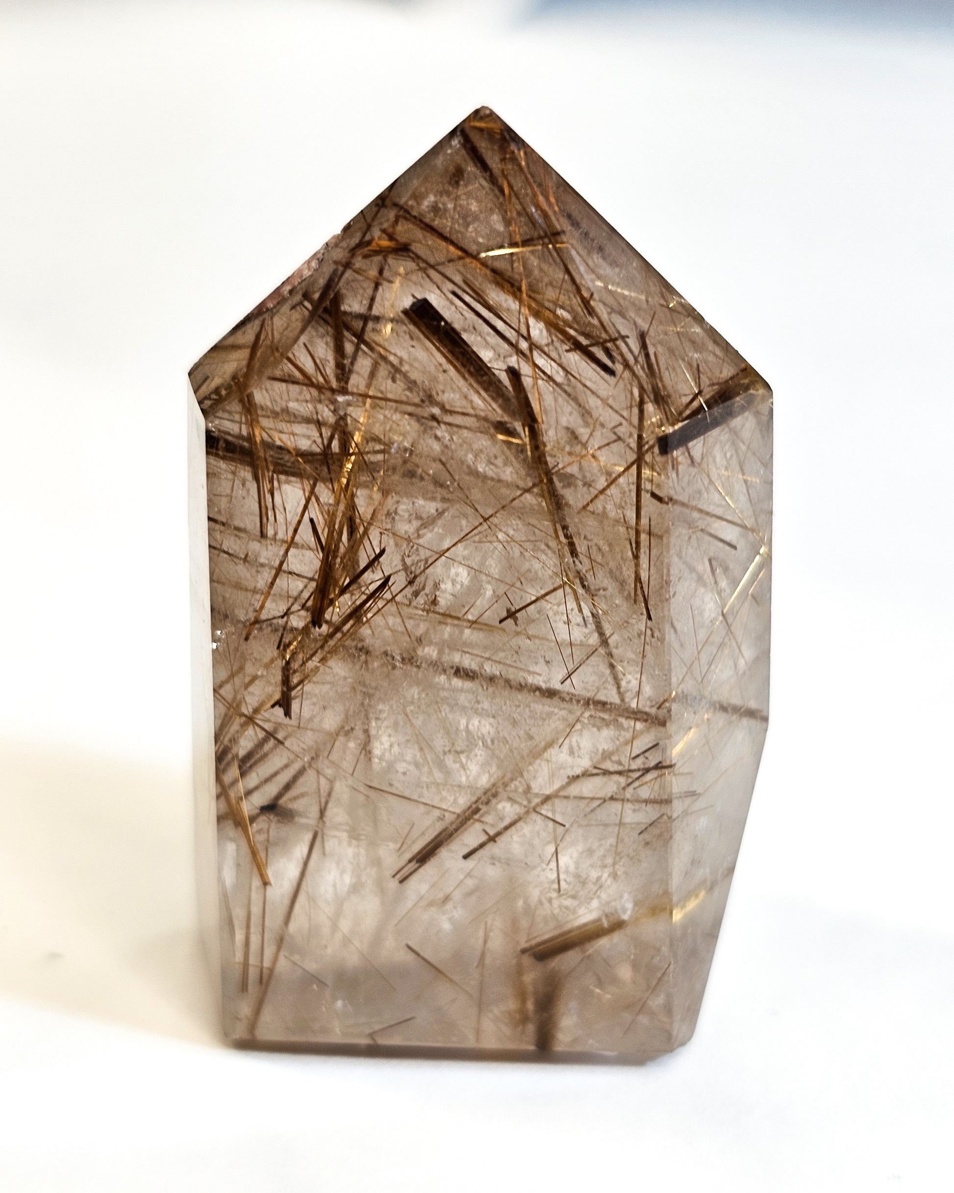 RUTILATED QUARTZ is an illuminator for the soul, promoting spiritual growth. It cleanses and energises the aura, draws off negative energy. Gives protection against the ill thoughts of others. Helps to reach the root of problems and facilitates transitions and a change of direction. Soothes dark moods, relieves fears, phobias and anxiety. Aligns ALL CHAKRAS.