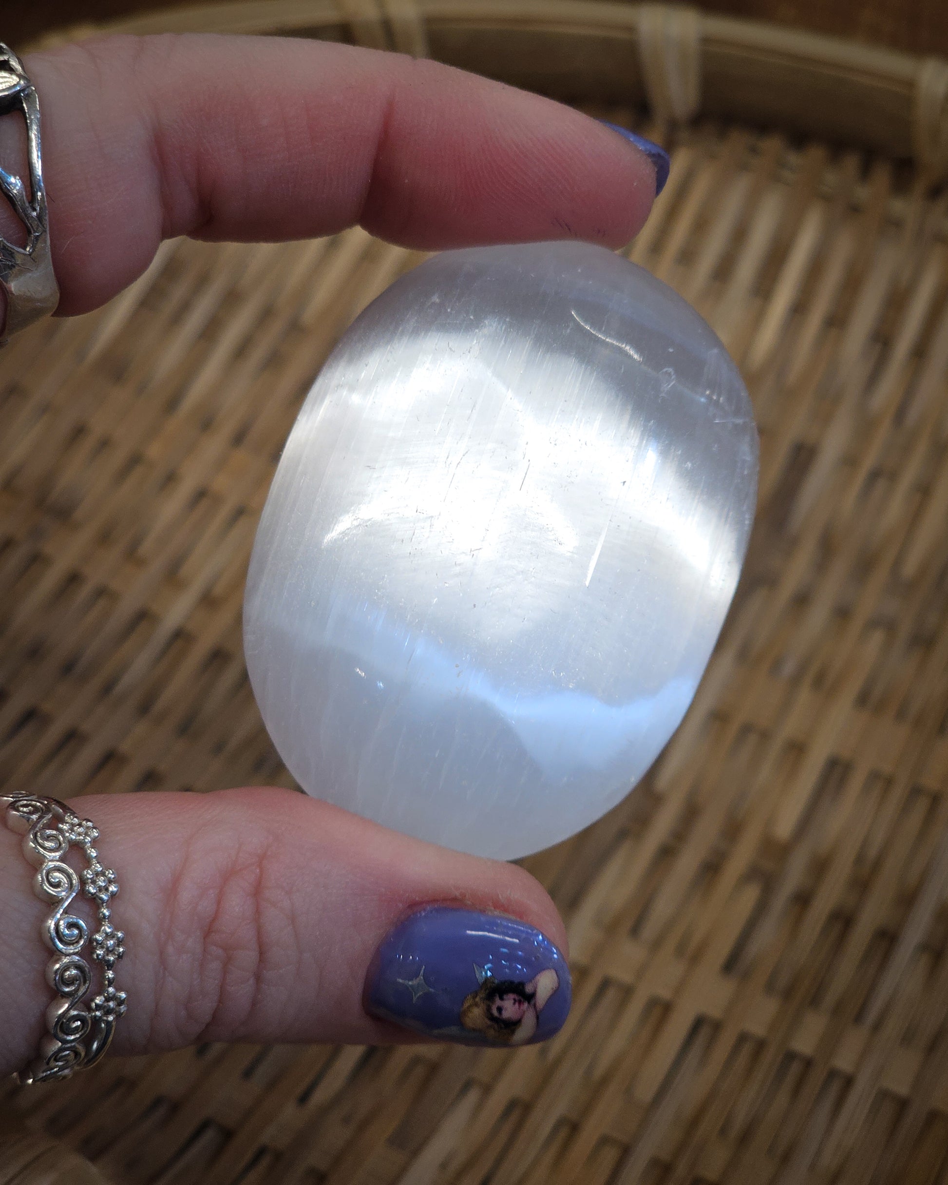 Selenite is a stone of light and wisdom. Best stone to help you meet your spirit guides and angels. Improves telepathic communication. Perfect stone for grids, creates a safe space, and uplifts. Supports the muscular, skeletal and nervous systems. Opens and clears the crown, and higher crown chakras. Very good for cleansing spaces.