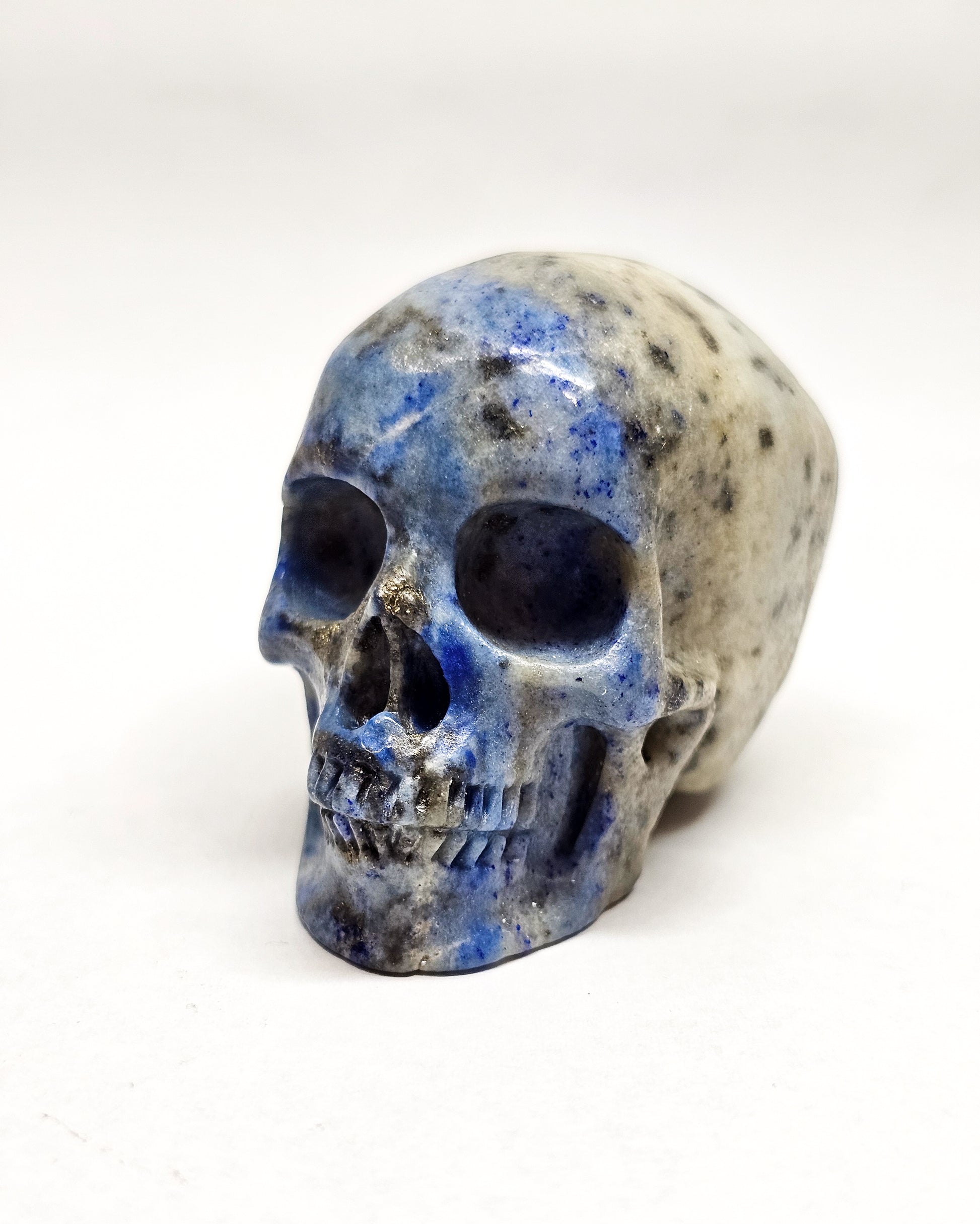 An incredibly detailed handcarved skull made from Lapis Lazuli