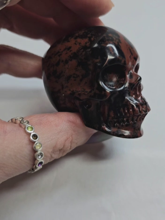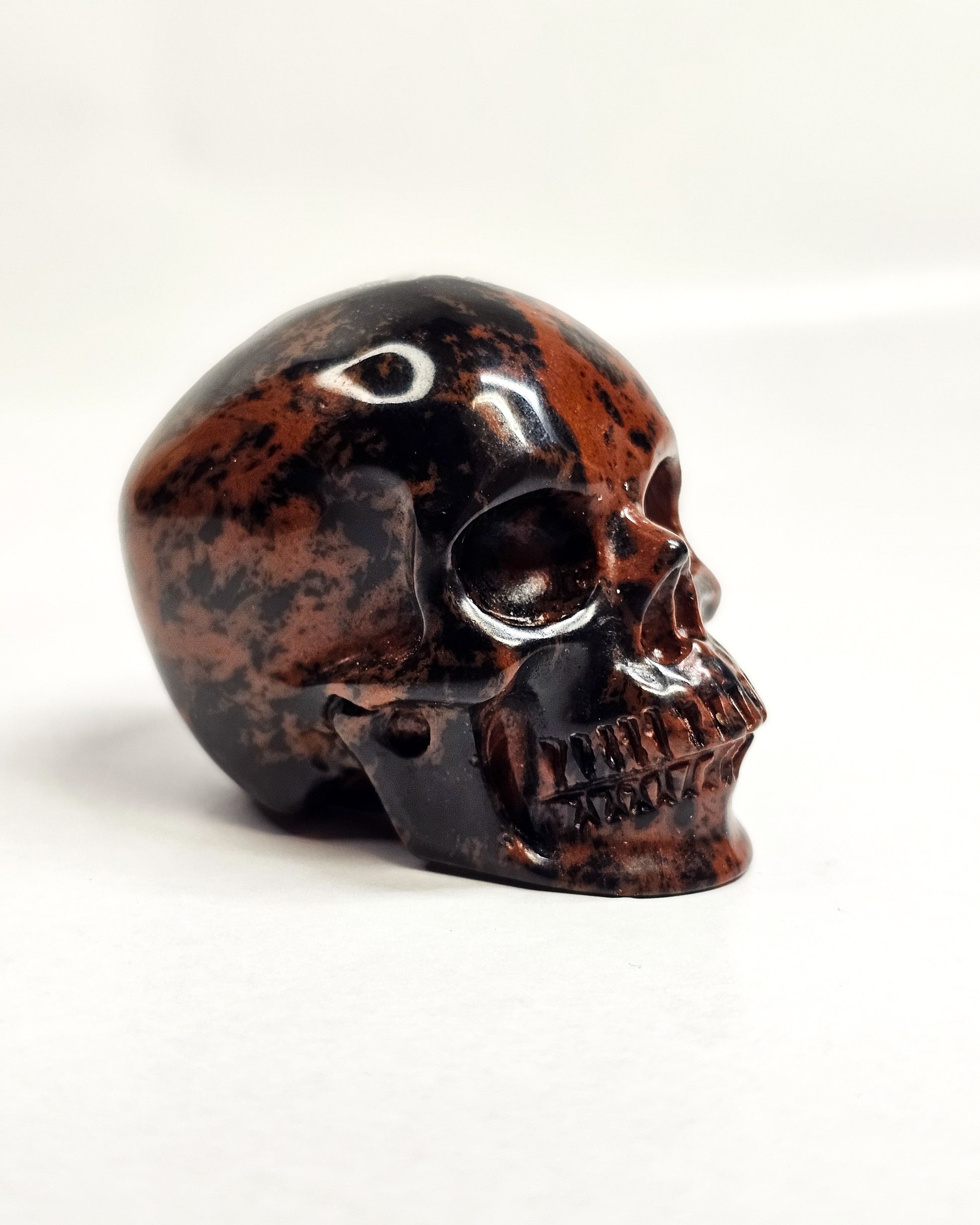 An incredibly detailed handcarved skull made from Mahogany Obsidian