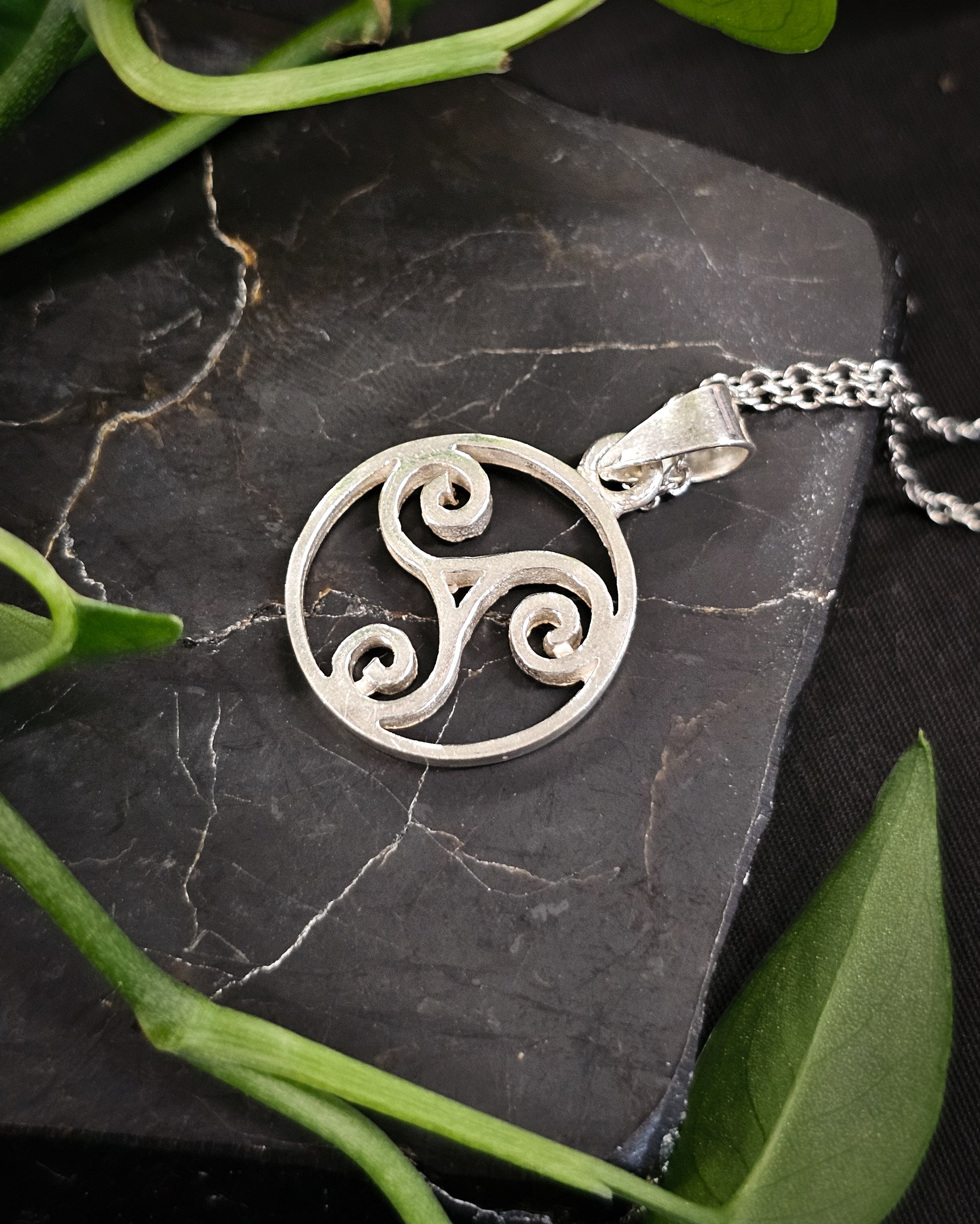 The Celtic Triskele was a symbol that had various meanings for the early Pagans. It was linked to the sun, triadic Gods, the three domains of land, sea, and sky, and also believed to represent the cycles of life.
